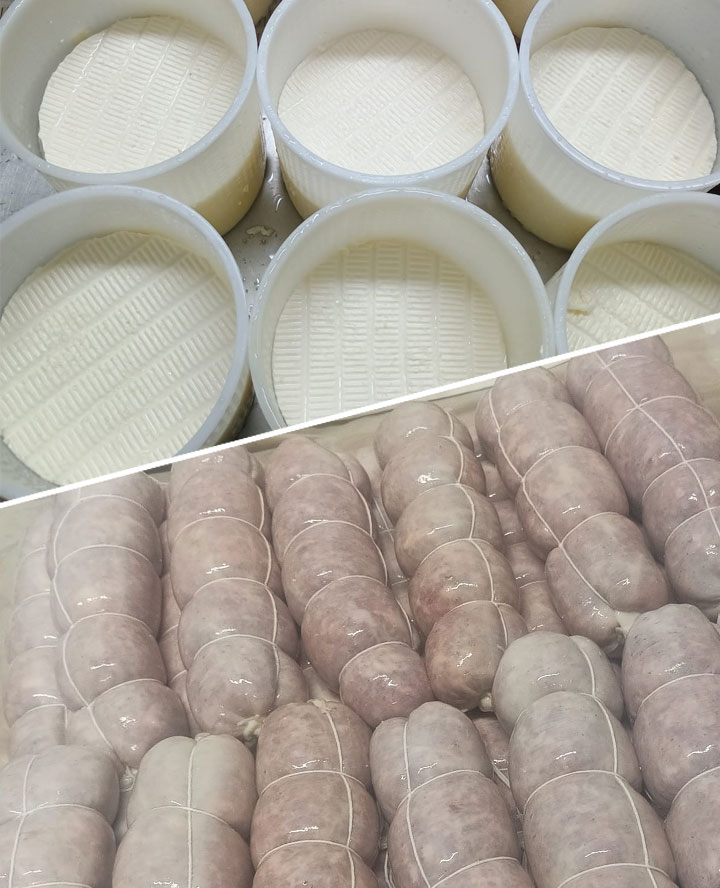 Accanto a questa attività, si affianca, nel periodo autunnale-invernale, grazie al norcino Marco, la produzione propria di salumi di carne suina, con maiali allevati direttamente in azienda, utilizzando il siero, residuo della caseificazione, ma fonte importante di proteine di alta qualità per i suini da ingrasso.